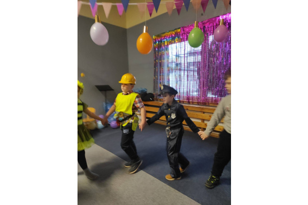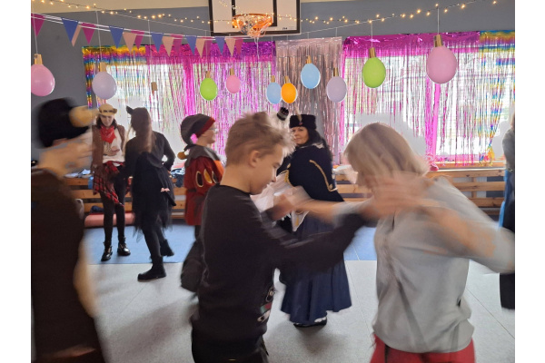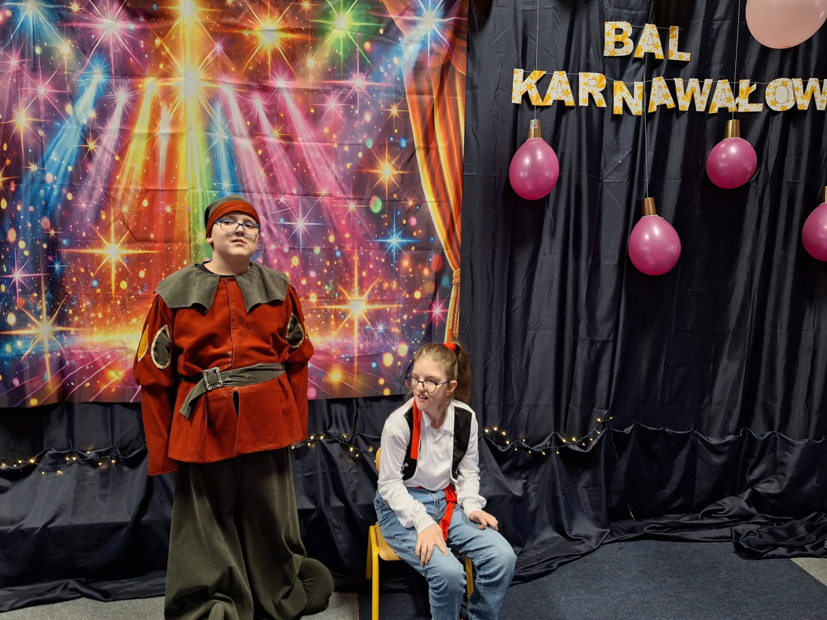 Jak to bywa w karnawale przyszedł czas na bale. Po kolei wszystkie klasy w karnawałowym rytmie na balach pląsały. Klasy młodsze też extra Bal miały i swoje piękne stroje zaprezentowały. Panie Wiosna, Lato, Jesień i Zima im towarzyszyły, w tany porwały, był to czas wspaniały.