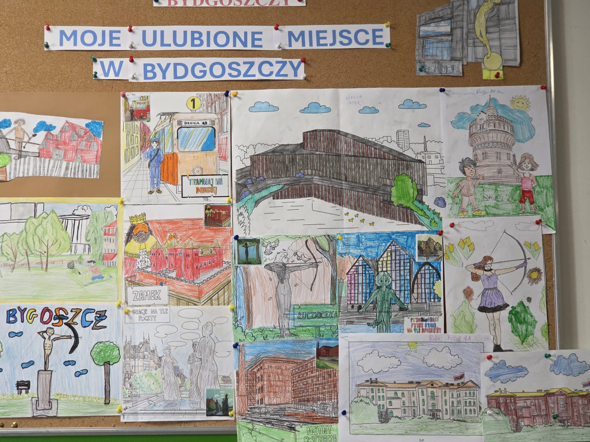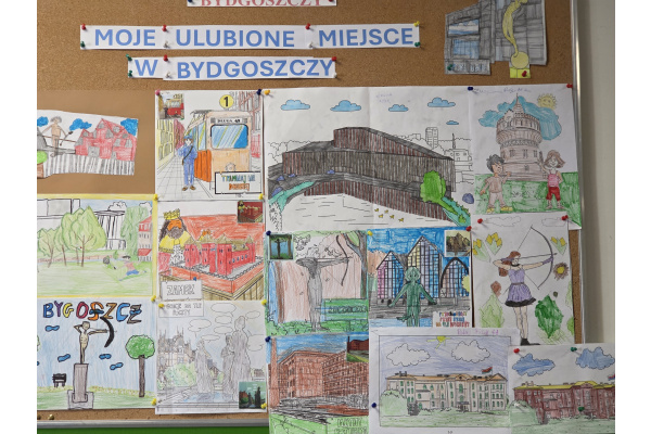 Szkolne Koło TMMB zorganizowało konkurs plastyczny " Moje ulubione miejsce w Bydgoszczy". Uczniowie przedstawili w formie rysunków miejsca, które szczególnie lubią odwiedzać w swoim mieście.
