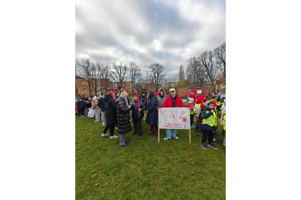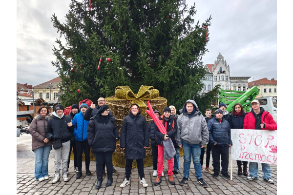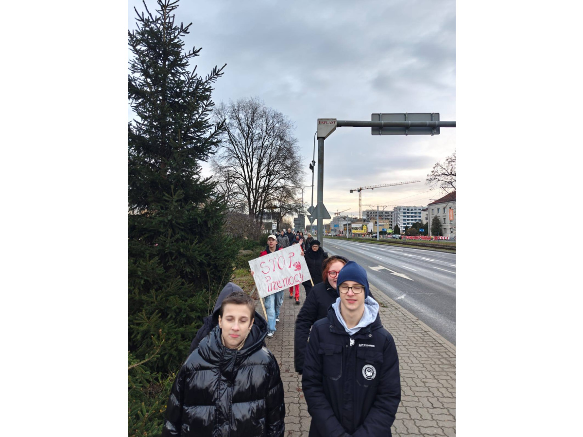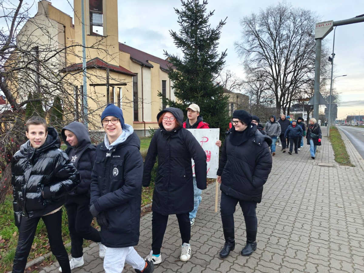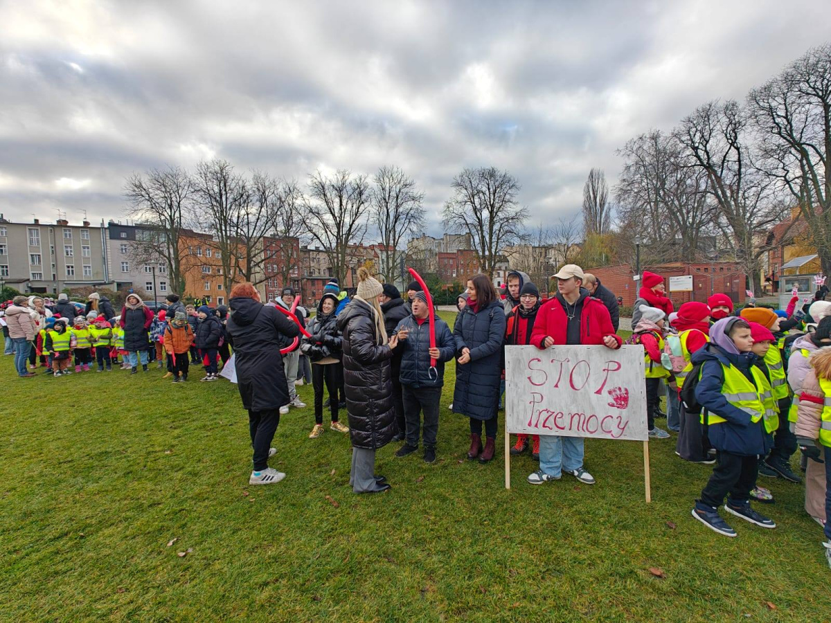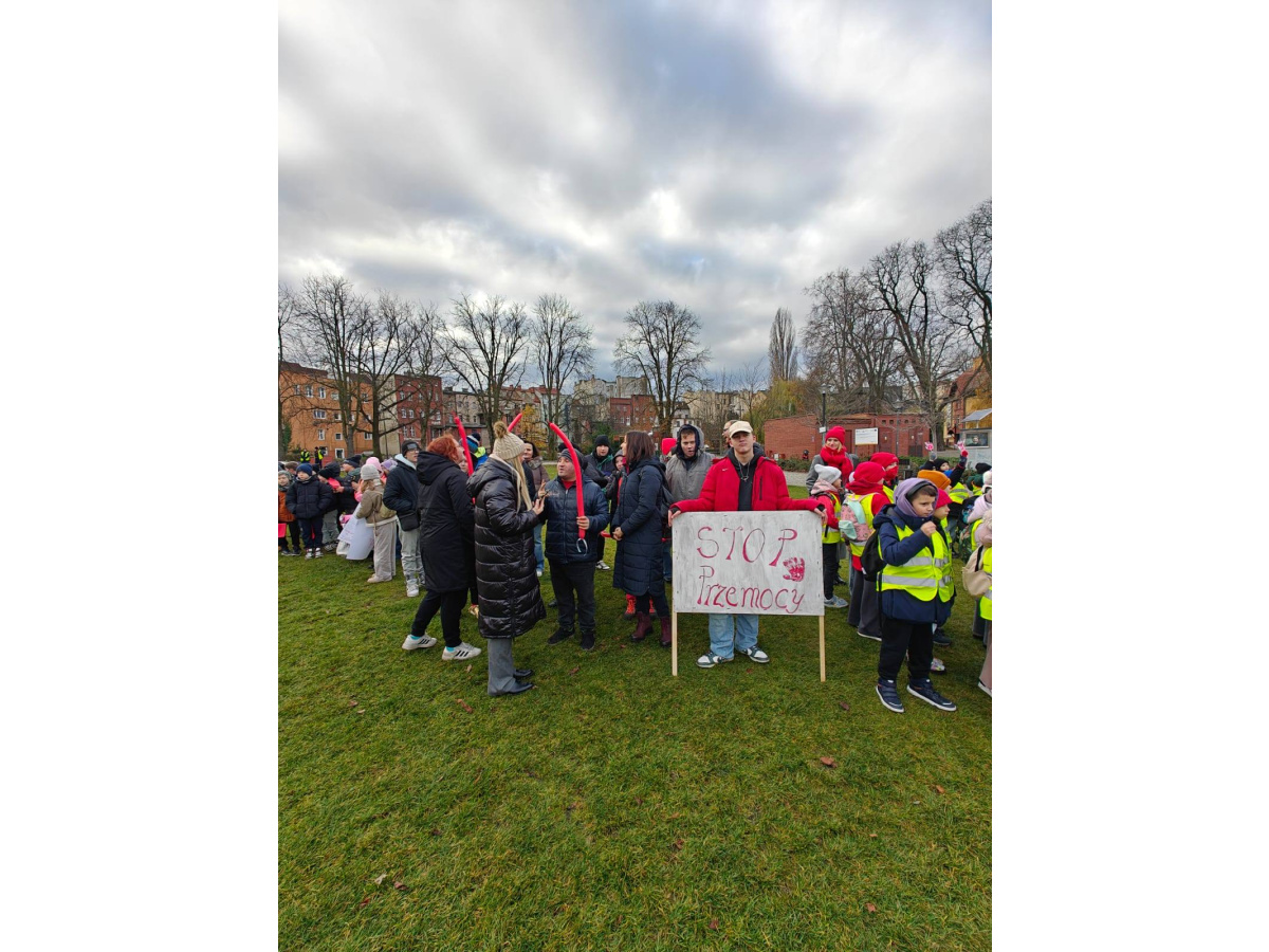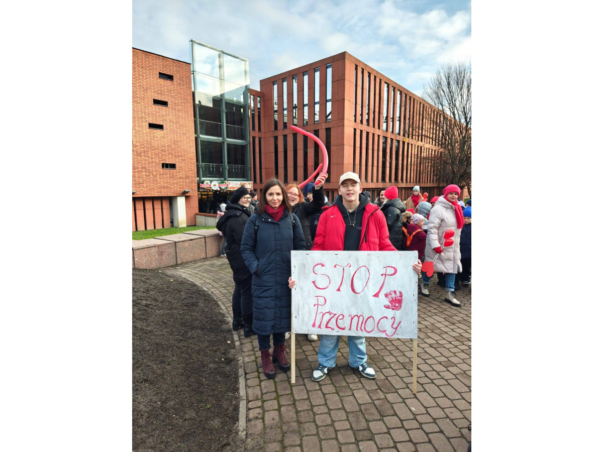 19 listopada grupa uczniów naszej szkoły wzięła udział w marszu "Ramię w ramię-dzieciństwo bez przemocy". Celem przedsięwzięcia było promowanie postaw opartych na szacunku, przyjaźni i wsparciu wśród dzieci i młodzieży, a także wzmacnianie świadomości o prawie każdego dziecka do życia bez przemocy. Marsz jest dla nas początkiem innych zajęćdotyczących przeciwdziałania przemocy. W naszej szkole odbędą się spotkania edukacyjne, integracyjne i wystawy tematyczne. Na znak poparcia kampanii zostanie tez podświetlony budynek szkoły na czerwono.