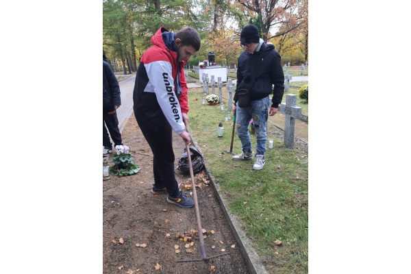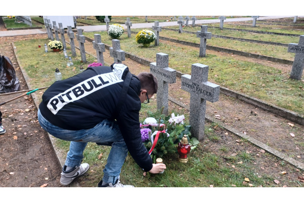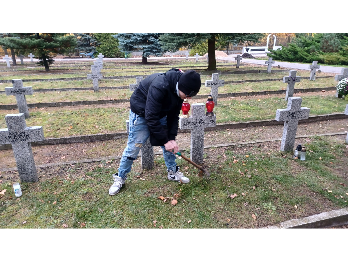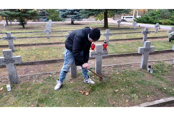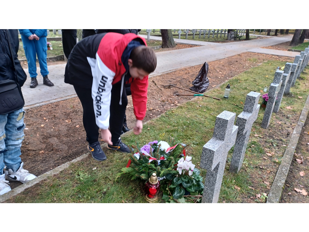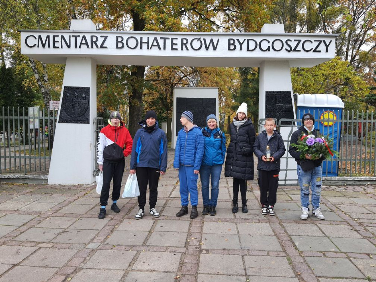 Uczniowie odwiedzili Cmentarz Bohaterów Bydgoszczy, złożyli własnoręcznie wykonany wieniec i zapalili znicze na grobie Stefana Balcera.