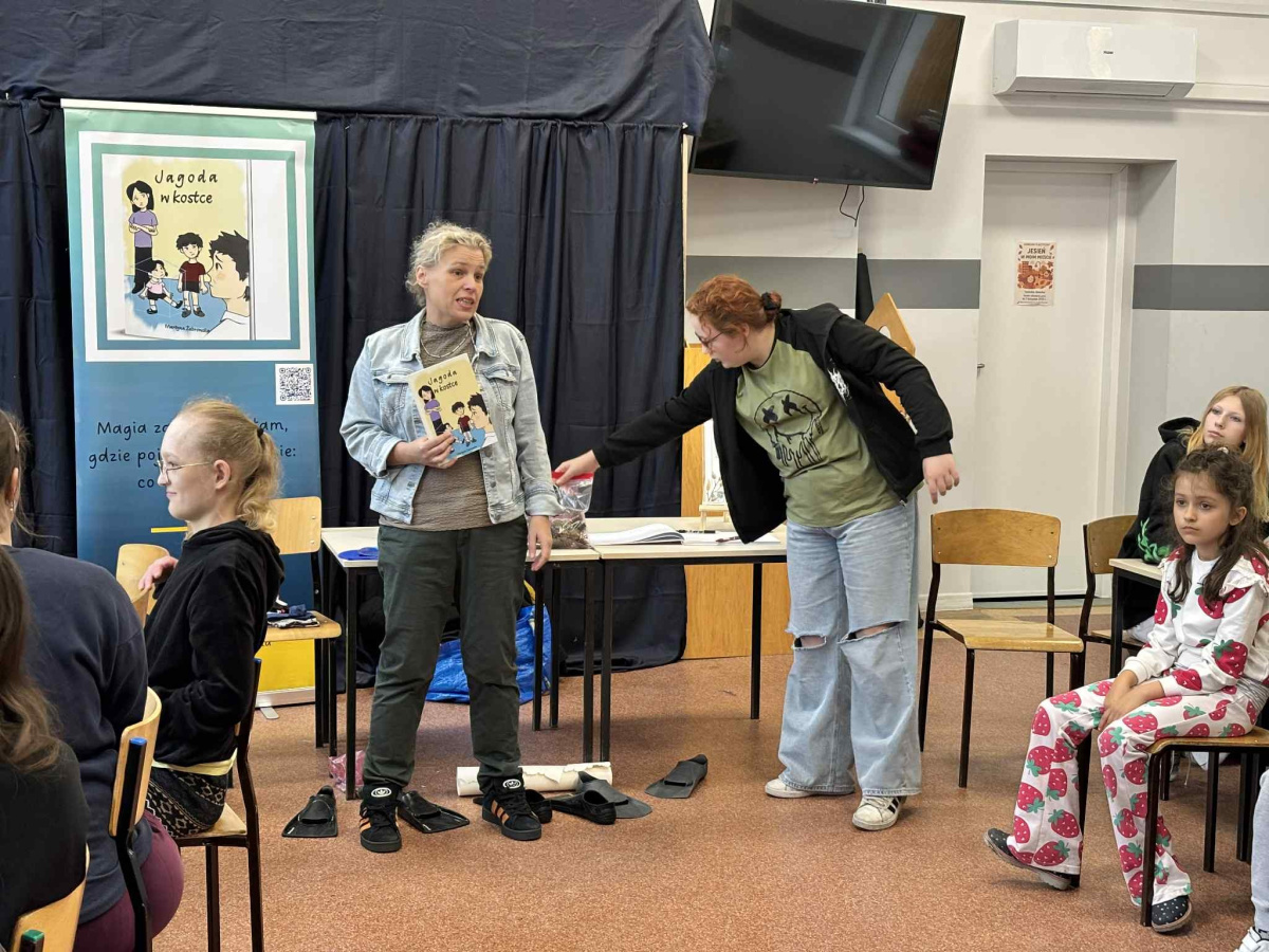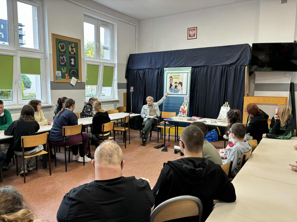 Podczas spotkania usłyszeliśmy fragmenty książki i dowiedzieliśmy się jak różni są ludzie oraz jak istotne są różnice między nami. W części warsztatowej dzieci miały okazję sprawdzić jak to jest, kiedy mamy trudności z chodzeniem, ze wzrokiem czy motoryką małą. Jak różnie odczuwamy otaczający nas świat i odbieramy bodźce zewnętrzne. Wszyscy jesteśmy różni i to jest w nas najpiękniejsze!