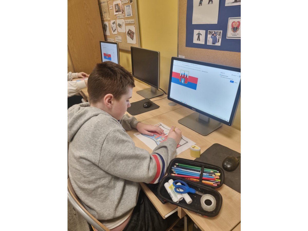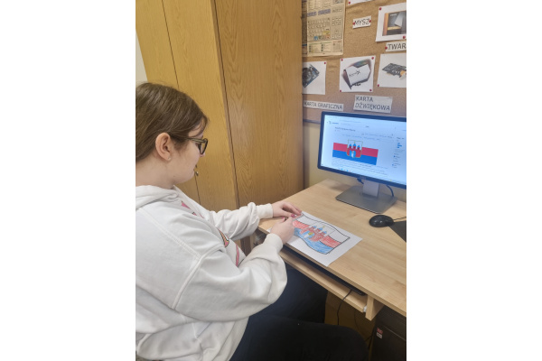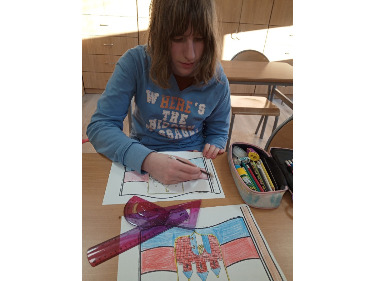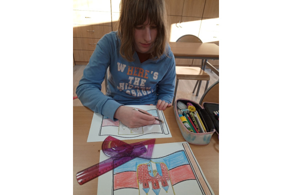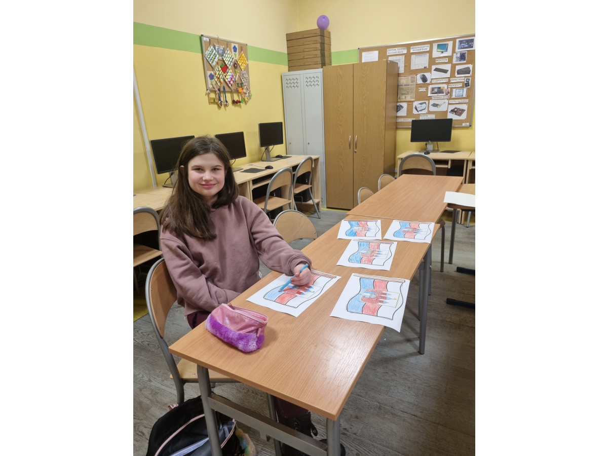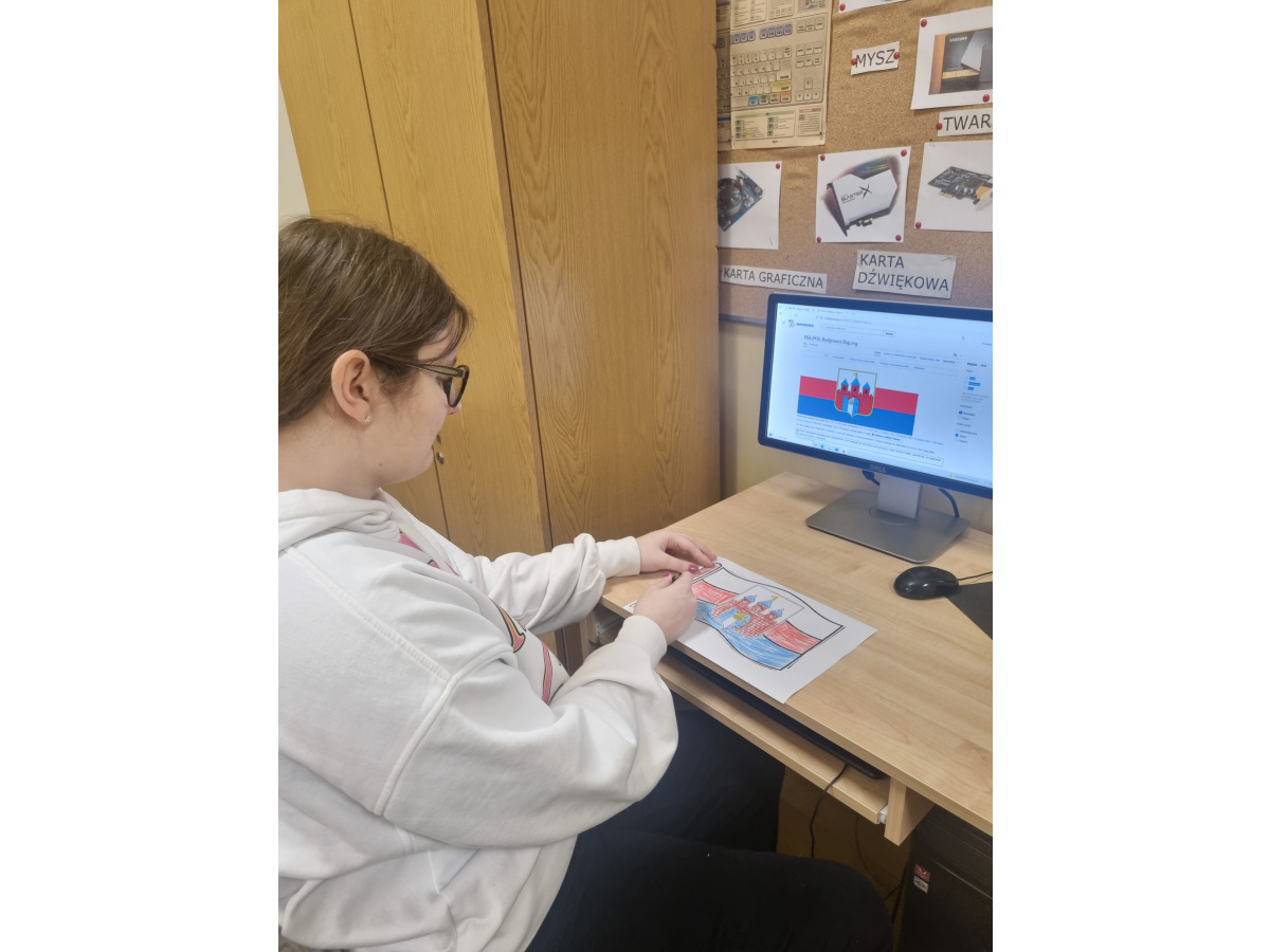 Odbyły się warsztaty informatyczno- plastyczne dla uczestników Szkolnego Koła TMMB, na których uczniowie szukali informacji jak wygląda flaga Bydgoszczy i rysowali flagę miasta. Zwieńczeniem tych działań było wykonanie gazetki ściennej w korytarzu szkolnym.