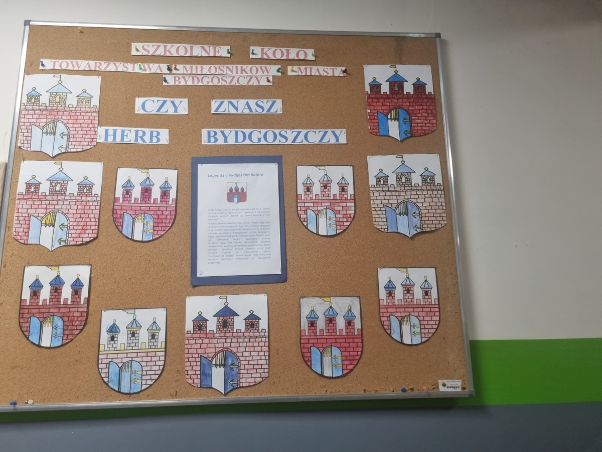 Na warsztatach zorganizowanych przez Szkolne Koło Towarzystwa Miłośników Miasta Bydgoszczy uczniowie rysowali herb miasta, poznali kolory umieszczone na herbie oraz zapoznali się z legendą o powstaniu miejskiego herbu. Została zorganizowana wystawa prac uczestników spotkania.