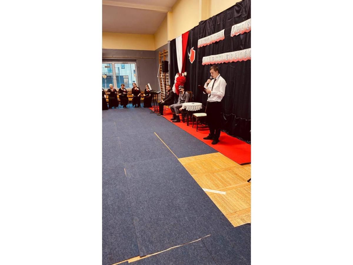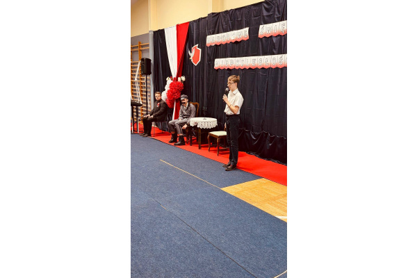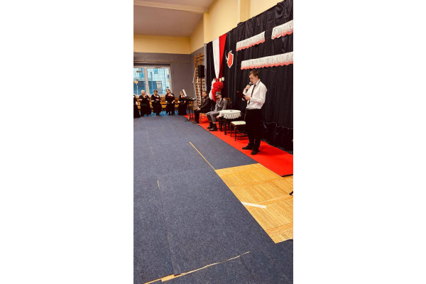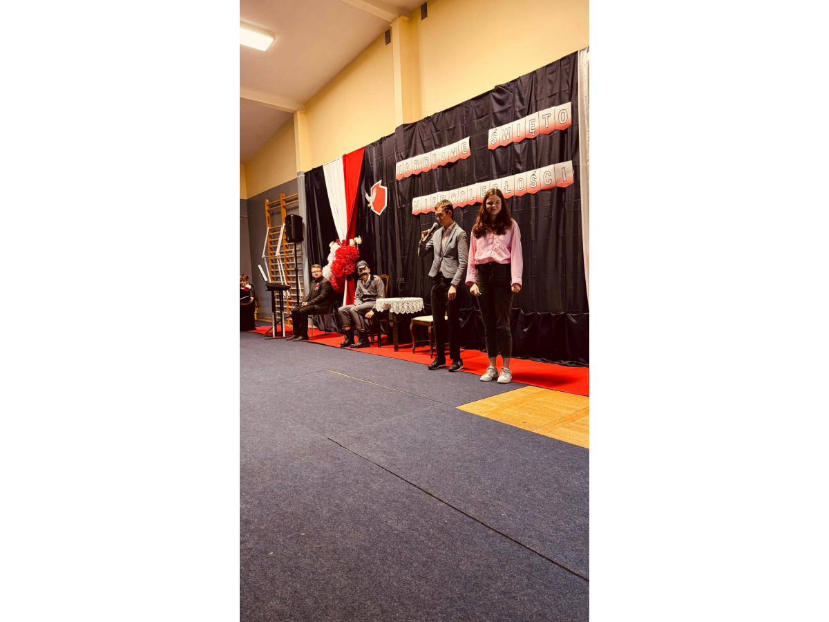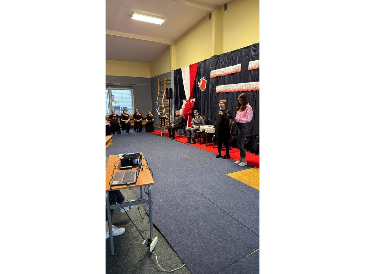 Zgromadzeni uczniowie wysłuchali również wierszy okolicznościowych przygotowanych przez naszych uczniów z klas: szóstej, siódmej i ósmej.