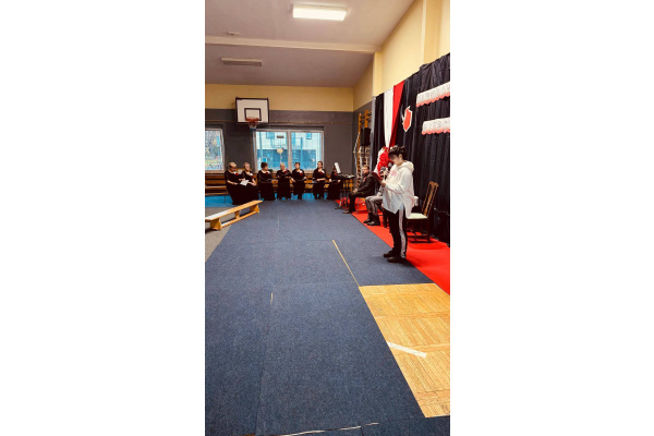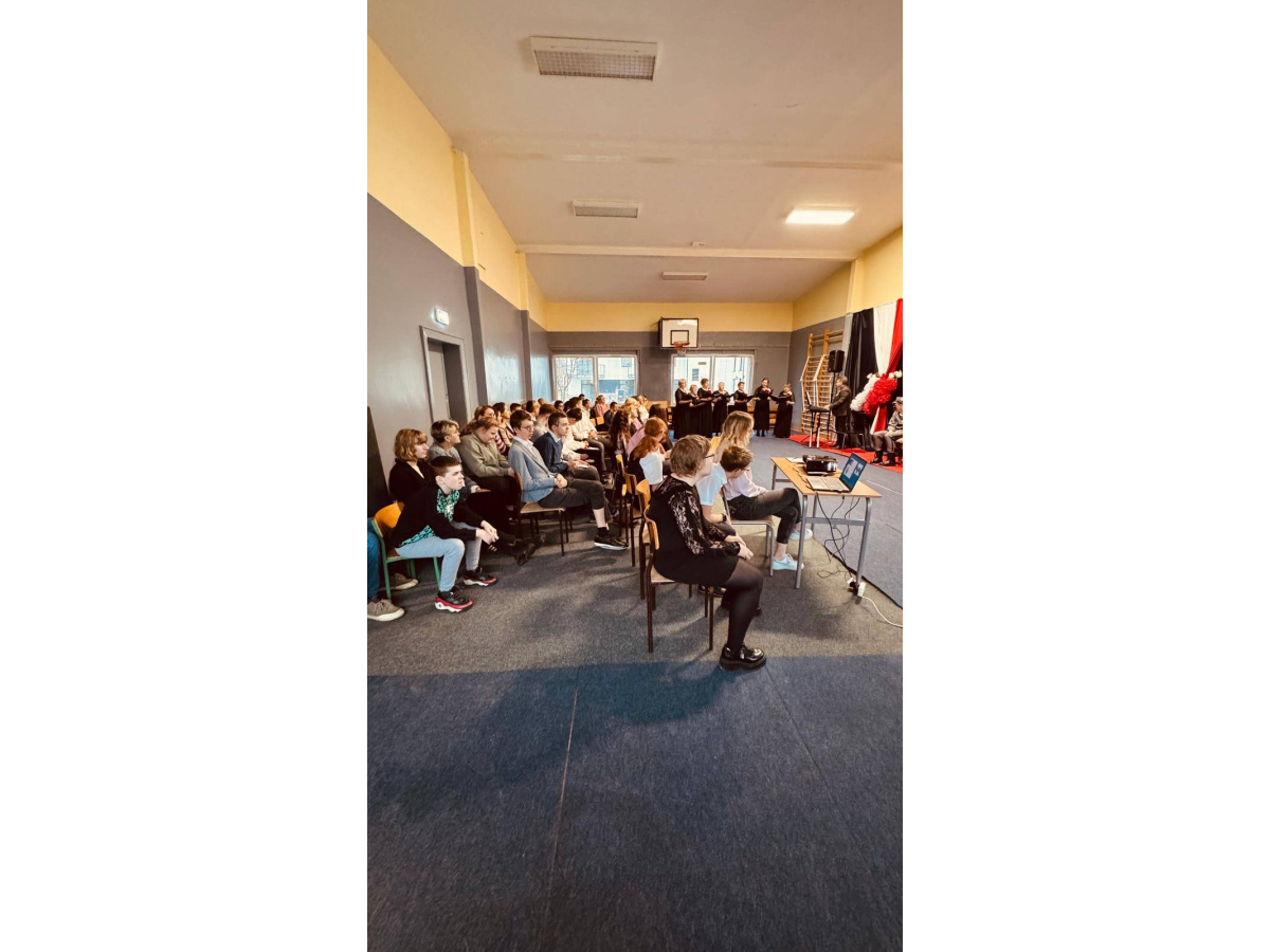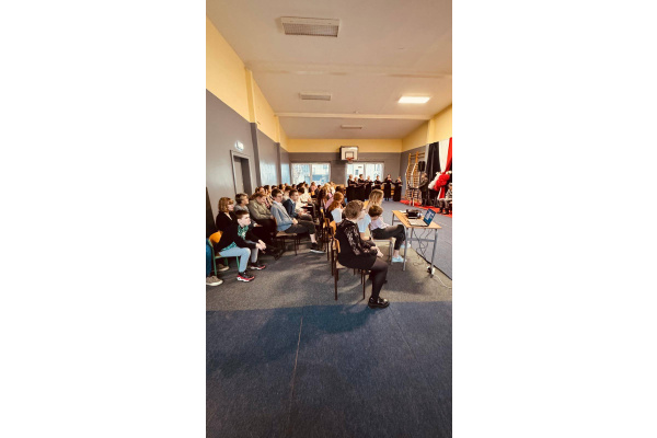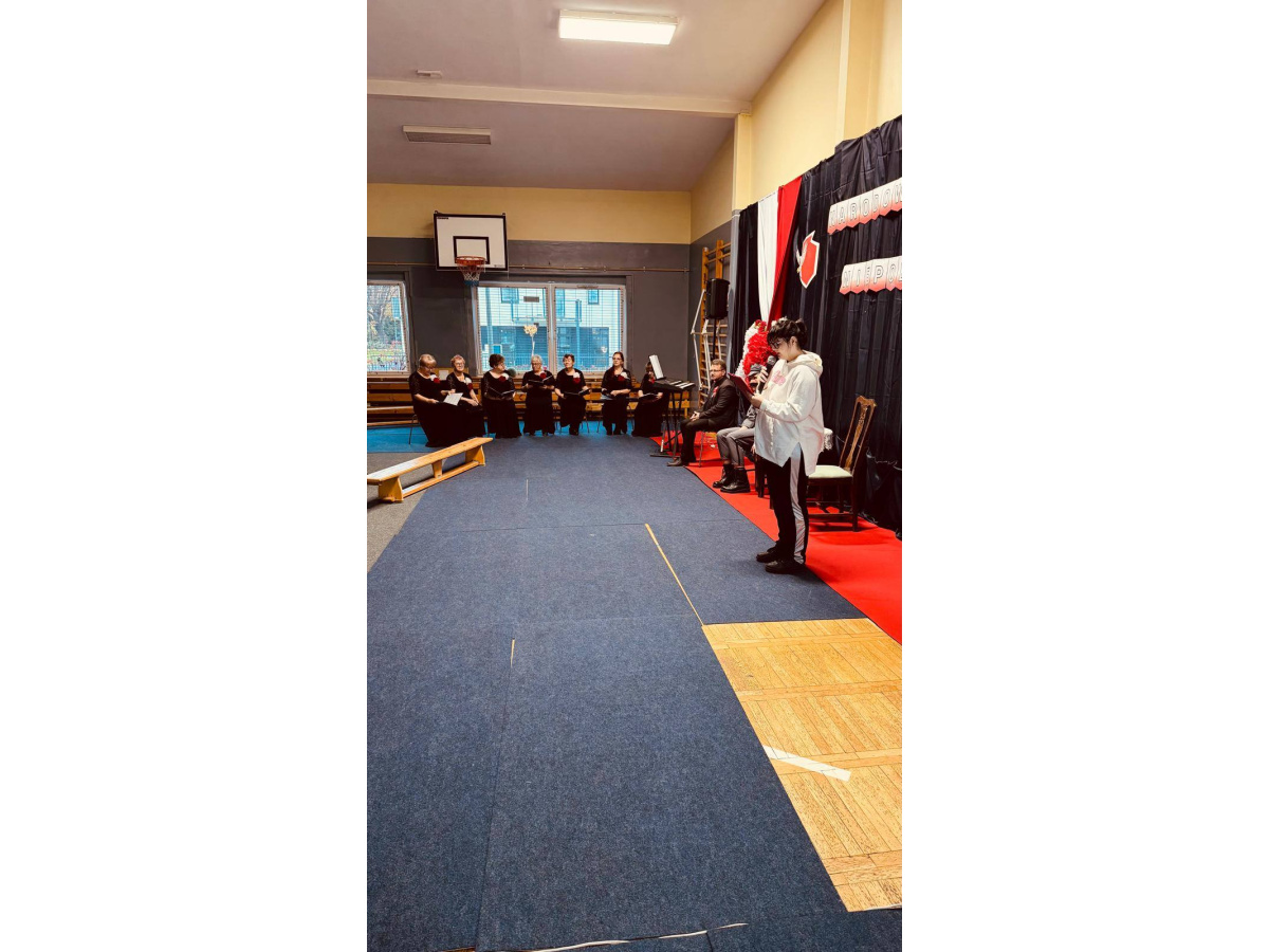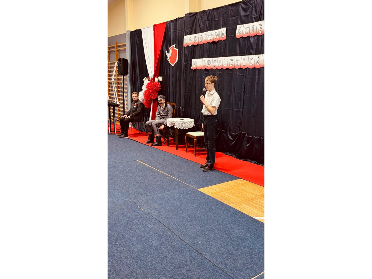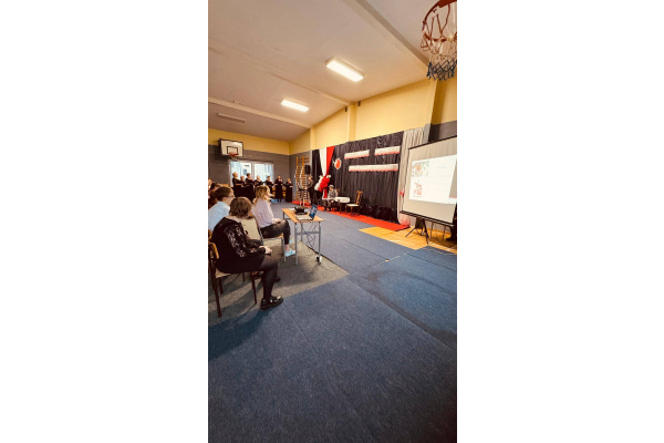 Zgromadzeni uczniowie wysłuchali również wierszy okolicznościowych przygotowanych przez naszych uczniów z klas: szóstej, siódmej i ósmej.