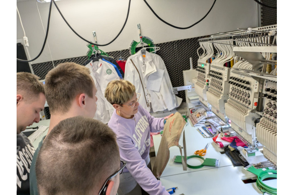Wycieczka do szwalni i hafciarni była bardzo udanym i inspirującym doświadczeniem dla uczniów. Mieli oni okazję zobaczyć z bliska, jak powstają ubrania – od projektu aż po gotowy produkt. Szczególne zainteresowanie wzbudziły nowoczesne maszyny hafciarskie oraz precyzja pracy pracowników. Uczniowie zadawali wiele pytań i z dużym zaangażowaniem uczestniczyli w spotkaniu, poszerzając swoją wiedzę o zawodach związanych z przemysłem odzieżowym. Wizyta była nie tylko ciekawą lekcją praktyczną, ale także świetną okazją do rozwijania zainteresowań i wyobraźni.